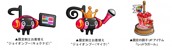 (3)チケットは「JOYSOUNDのアバたま」で利用することが可能であり、アバたまからはコラボ限定剣士お着替えなどのゲーム内アイテム1種類と「レッドラガール」モチーフの調子UPアイテム1個を獲得できます