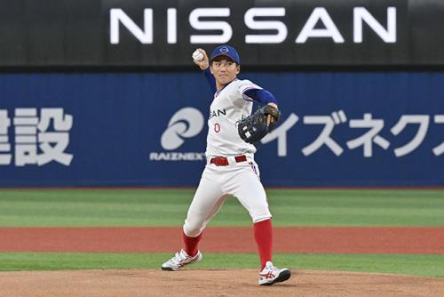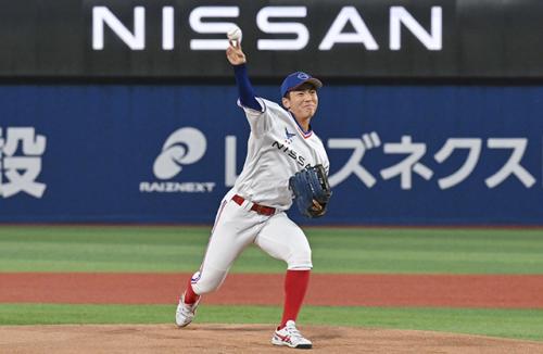 日産 冠協賛「#やっちゃえベイスターズ ナイター supported by NISSAN」横浜DeNAベイスターズ 対 広島東洋カープ 戦の始球式に、日産自動車硬式野球部 石毛大地 選手・主将が登板し、華麗な投球をみせて観客を沸かせた。