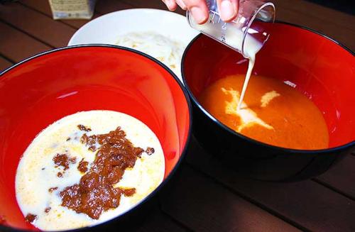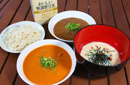 豆乳バターチキンカレーつけうどん/豆乳ビーフキーマつけうどん/豆乳ごまサバ冷や汁うどん