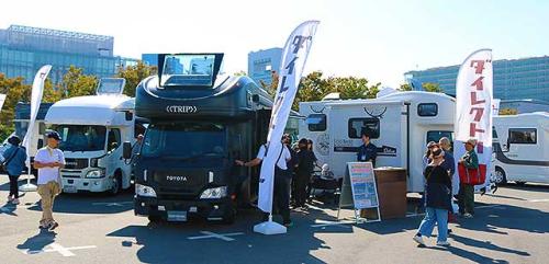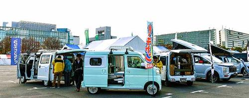 見た目はかわいい軽自動車にも関わらず、驚きの機能性とスペースをもつ人気の軽キャンパーや、きらびやかなホテルを思わせる欧米の大型モデル(クラスA)まで、あらゆる種類のキャンピングカー&キャンピングトレーラー約140台が東京・お台場の特設会場に大集結。