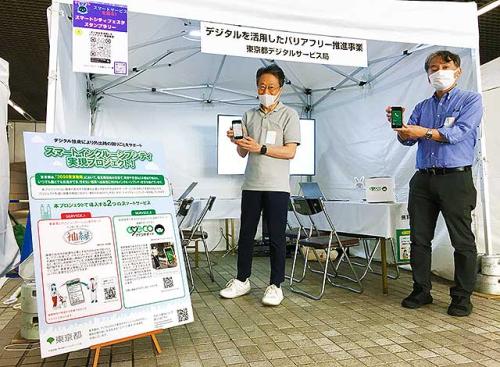東京都は「2050東京戦略」で、「最先端技術の実装で、障害や言語などの壁は打破され、いつでも誰とでも交流ができ、 行きたい場所へは自在に行けるインクルーシブシティ東京」を掲げ、コミュニケーションアプリ「袖縁」と視覚障害者向け遠隔サポートサービス「アイコサポート」の2つのスマートフォン用アプリを使った実証実験を継続中。