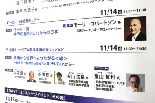 展示企業(一部):イワツキ、サイトウ製作所、タニタ、チノー、トーハツ、トプコン、理研計器、リンテック、ルケオ、美彫社、フォーラムジェイ、志村製函所、ルケオ、尾崎製作所、巣鴨信用金庫、イワツキ、チノー、尾野製本所、トーハツ