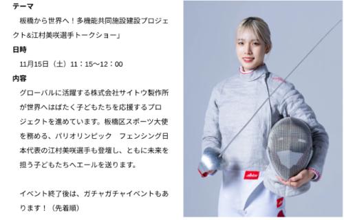 板橋から世界へ!多機能共同施設建設プロジェクト&江村美咲選手トークショー 11/15 11:15~12:00