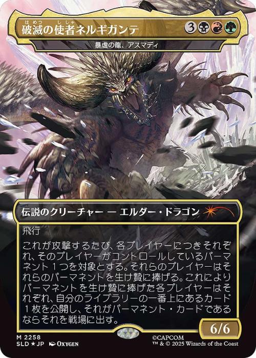 モンハンの世界がマジックの Secret Lair Superdrop として登場し、人気のモンスターであるリオレウス、ネルギガンテ、ジンオウガをはじめ、作品の魅力である「狩猟」の迫力をカード上で表現。
