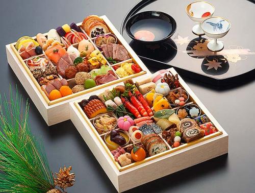 内容 : 伝統的な和の味わいと彩り豊かな和洋折衷の品々をお楽しみいただける二段重です。豪華なローストビーフや味わい深い蝦夷あわびの旨煮など、和と洋の贅沢な味わいが詰まっています。