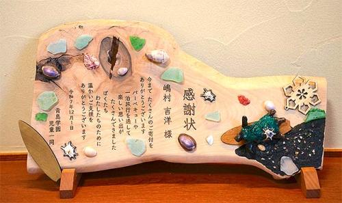 当日は、青島学園の子どもたちと職員たちが、手づくりの感謝状も合わせて贈呈。