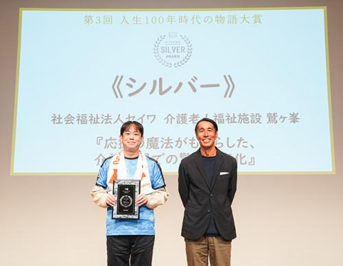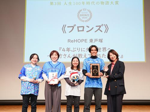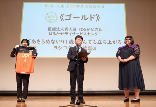 この Beサポ! で生まれた物語のなかから、全国 1万1218人の投票で選出された 3つの物語を表彰する「人生100年時代の物語大賞」授賞式が開催され、ゴールド・シルバー・ブロンズ・職員の各賞受賞者を称えた。