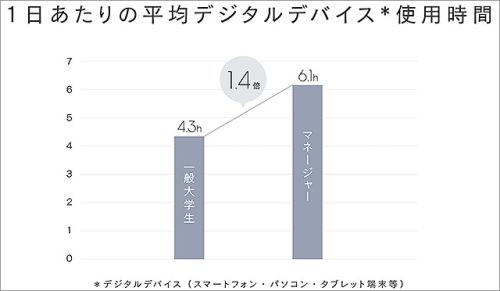 マネージャーのデジタルデバイス使用時間は一般大学生の約1.4倍