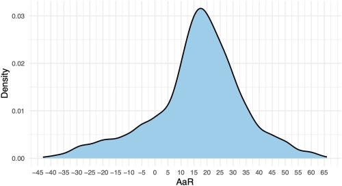 研究ではこれは「発表時年齢(Age at Release:AaR)」と呼ばれており、人生のどの時期に「意味のある音楽」が生まれやすいのかを年齢分布として描き出しています。