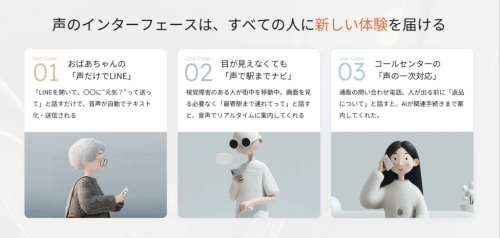 「STT(Speech to Text)」「TTS(Text to Speech)」「LLM(Large Language Model)」「Speech Engine」など音声対話に必要な機能やデータのトレーニングメソッドを独自研究開発し、極めて自然で低遅延な対話を実現するための音声AIプラットフォームを提供している。