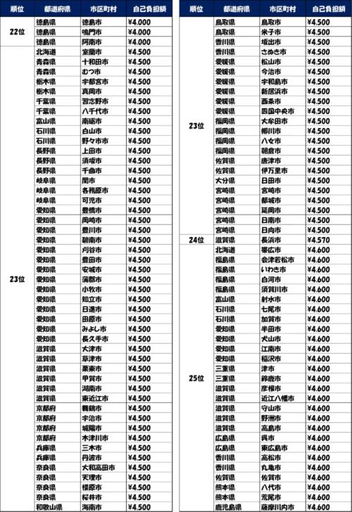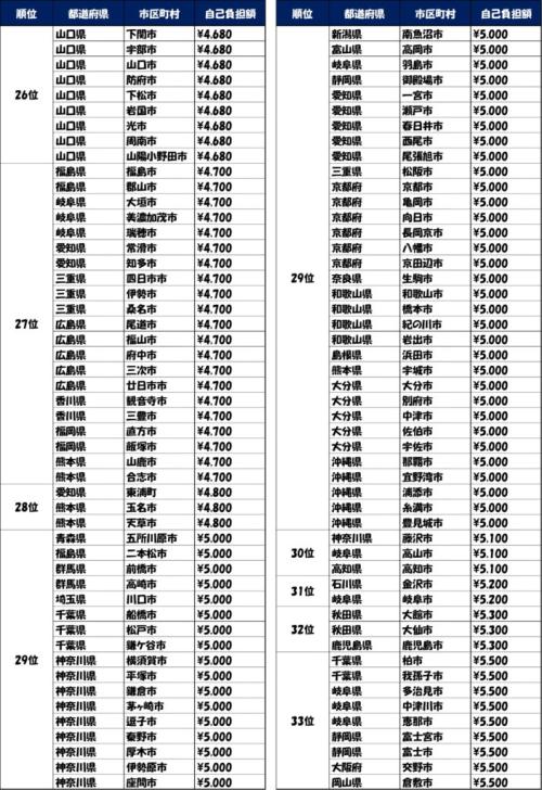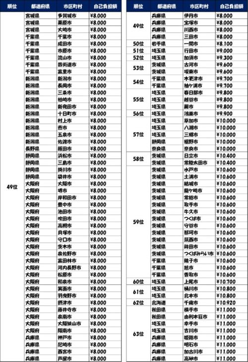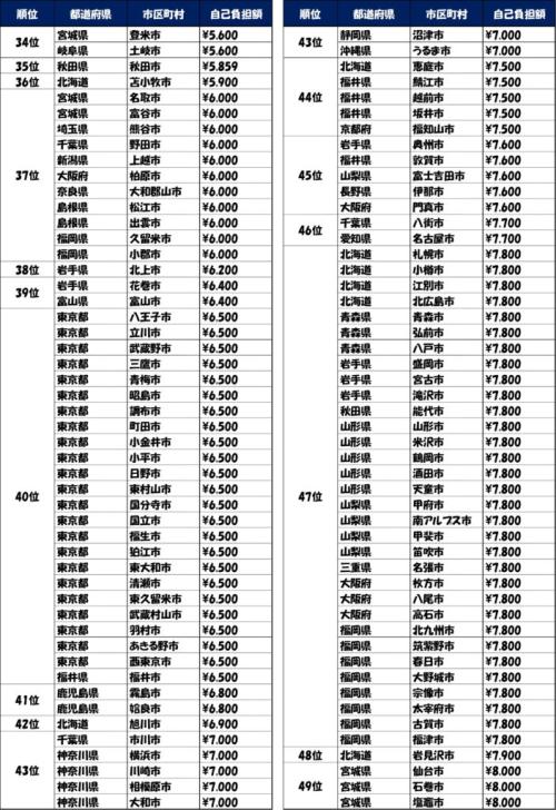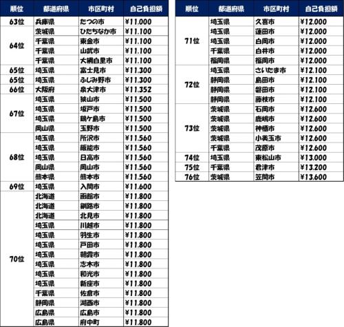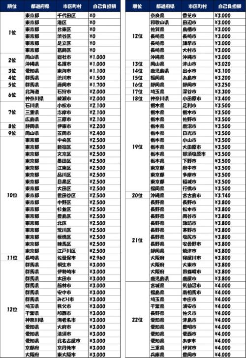 自治体別自己負担額ランキング
