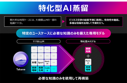 当社は、本技術を適用することで「Takane」の進化を加速させ、お客様のビジネス変革を強力に支援します。今後は、今回の成果を基に、金融、製造、医療、小売など、より専門性の高い業務に特化した「Takane」から生まれる軽量AIエージェント群を開発・提供していきます。また当社は、本技術をさらに発展させ、生成AIの精度を維持したままモデルのメモリ消費量を最大1,000分の1へ削減し、あらゆる場所で高精度かつ高速な生成AIが利用できる世界の実現に貢献していきます。さらに将来的には、これらの特化型「Takane」を進化させて、世界の仕組みや因果関係をより深く理解し、複雑な課題に対して自律的に最適な解決策を導き出すAIエージェント向けの生成AIアーキテクチャに発展させていきます。