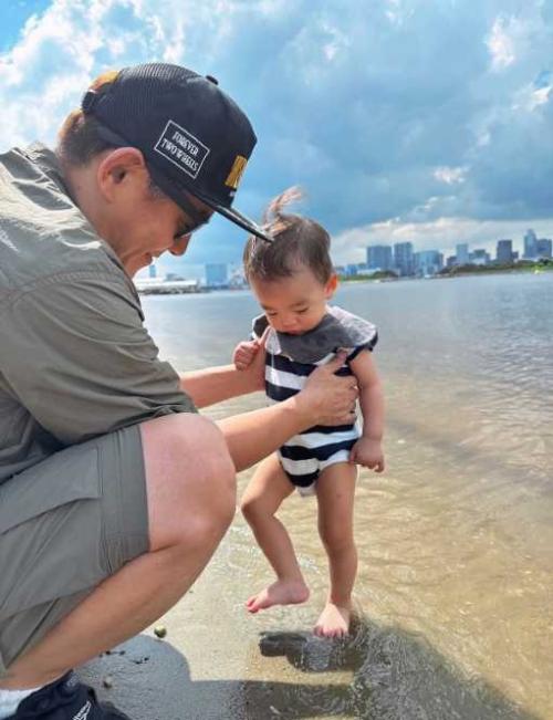 今回の“海デビュー”報告は、そんな家族の温かい日常を切り取った一枚となった。
