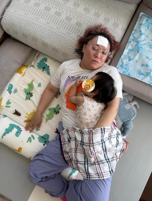 昼寝の際にはコットンをおでこに貼りながらぐったりと休む様子を投稿しており、リラックスした日常の一面をファンに見せた。