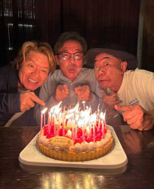 投稿では、64本のロウソクが立てられたケーキとともに、木梨、ヒロミ、光石が並んで笑顔を見せる仲睦まじい姿が印象的だ。バースデーケーキのロウソクの数に「ケーキ、もう火事じゃん!」とファンがつっこむほど、