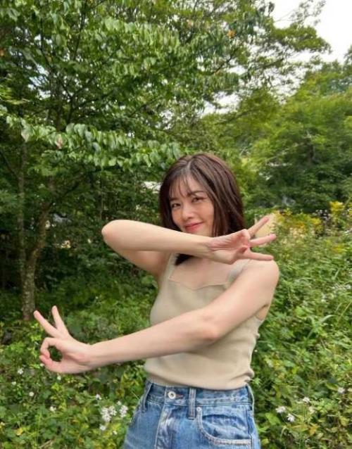 今回の投稿で小芝は、デニムとベージュのキャミソールを合わせたナチュラルなコーディネートを披露。