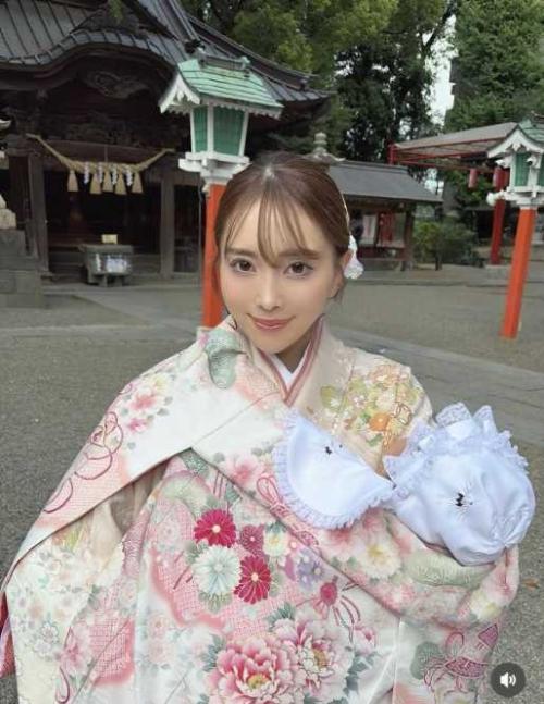 投稿された写真では、淡いピンクと白を基調にした華やかな花柄の着物に身を包み、赤ちゃんを抱いた森咲の姿が印象的だ。