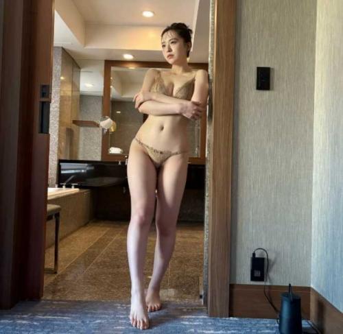 写真には、ホテルのような場所で撮影されたと見られる西野夢菜の姿があり、ベージュ系のセクシーなランジェリーを着用して壁に凭れかかっている。