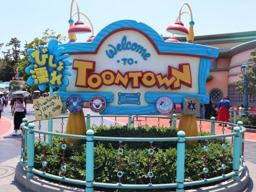 トゥーンタウン入り口の看板には、この期間にしか見ることができない看板がプラスされています。