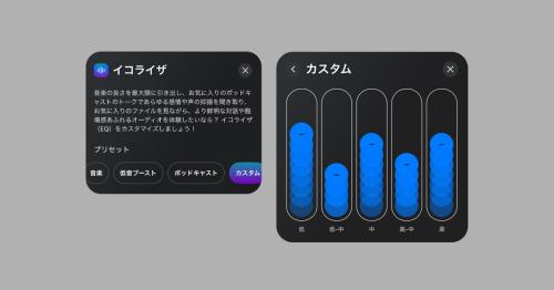 4マイクによる高性能なANC機能を搭載。専用の「Skull-iQ」アプリからANCの強さを調整したり、外音取り込みモードに切り替えることができます。アプリからは「音楽モード」「低音ブーストモード」「ポッドキャストモード」の3種類の標準イコライザーとカスタム設定が可能。5つのバンドから好みのサウンドにパーソナライズできます。