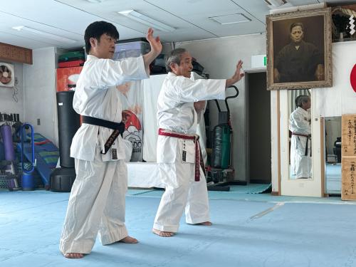 山口会長:すごく研究されてると思いますよ。ちなみに空手の基本的な動きとして、肩甲骨を開いたり閉じたるする動きや、骨盤を動かす動作があります。これらは(前述の那覇手では)舟を漕ぐときの動作が元になっていると言われていますね。地方によってはそれが馬の手綱を取る動作だったりしますが、基本は一緒です。