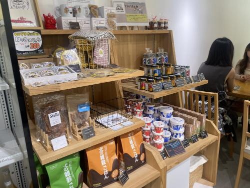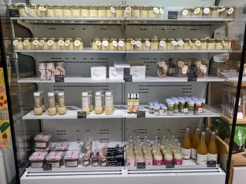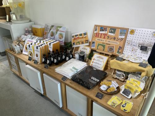 ▲「UOVO」店内では、プリンのほか、糸島のドレッシングや飲み物、塩なども販売。