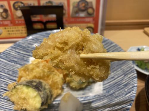 ▲お気に入りはレンコン。サクサク衣とシャキシャキの食感が抜群。