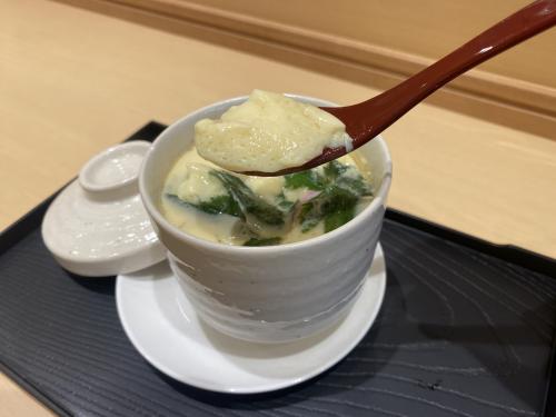 ▲茶碗蒸しはぷるぷる。スプーンから逃げそうなほどの柔らかさで、喉ごしも最高。