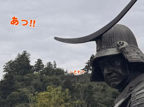 単純にかっこよく撮れるアングルなのかと思ったら、その奥にそびえる仙台城跡に設置されたみなさんご存知、馬に乗った伊達政宗公騎馬像がかすかに……