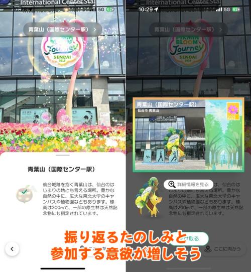 ピクミンたちといっしょに仙台の魅力に触れる、仮想と現実の世界がリンクした街歩きを体験することができた。