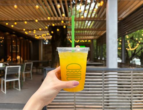 続いて、ジューシーなハンバーガーのお供には、同じく期間限定の「マンゴーレモネード」。Shake Shackの店舗で手作りされるレモネードに、マンゴーピューレがミックスされていて、トロピカルな香りと甘酸っぱさが口の中に広がります。ジューシーなハンバーガーの合間に飲むと、口の中がリセットされ、また次のひと口が新鮮に楽しめます。