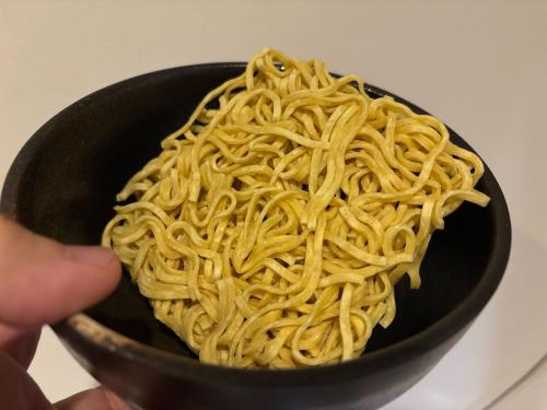 このこだわりがダイレクトに美味しさに繋がっていて、およそインスタントとは思えないクオリティの高いもっちり麺に仕上がっている。食感はもちろん喉ごしやウェーブ感もどれもピカイチ。インスタントの極太麺の最高峰ともいうべきクオリティだ。