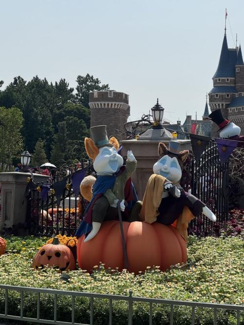 シンデレラ城前のエリアには、ヴィランズたちに扮装したおばけ達が楽しそうに過ごしています。