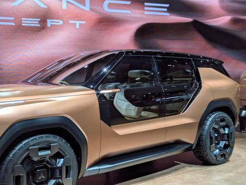 「MITSUBISHI ELEVANCE Concept」は、クルマで過ごす上質な時間を追求した電動クロスオーバーSUV。カーボンニュートラル燃料対応の高効率ガソリンエンジンと大容量の駆動用バッテリーを搭載したPHEVシステムを採用しています。