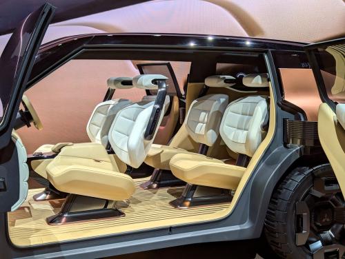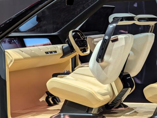 3列6人乗りのシートレイアウトにより、家族や仲間、荷物を乗せてもゆったりと過ごせる広々とした室内空間を確保。大容量バッテリーに蓄えた電力を活用し、旅先ではけん引するトレーラーでゆったりとした時間を過ごす、グランピングのような使い方を提案しています。