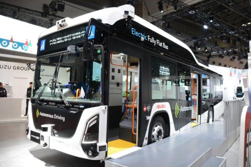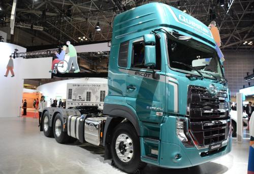 そのほか、UDトラックス創立90周年を記念した特別ラッピングの大型トラック「Quon GW 6×4」。万博でも活躍したバッテリーEVバス「エルガEV」に自動運転機能を搭載した開発中のモデルなどを見ることができる。