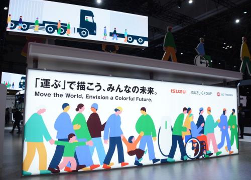 今回、いすゞグループが掲げるテーマは「『運ぶ』で描こう、みんなの未来。」。「地球の『運ぶ』を創造する」をPURPOSE(使命)に掲げるいすゞグループでは、JMS2025のコンセプト「ワクワクする未来を、探しに行こう!」をベースに、来場者に「運ぶ」の力を体感してもらうためのブース空間を創出する。