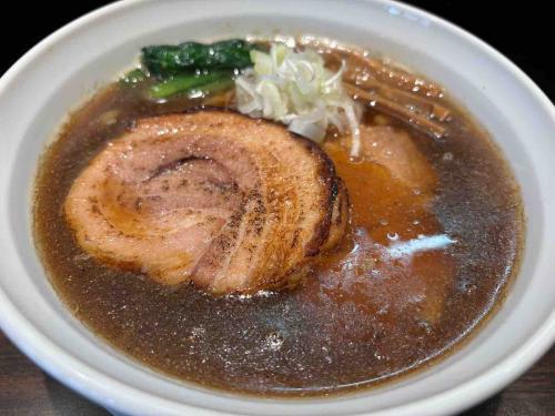 秋刀魚節がバッチバチにきいたスープで、油でも節感にブーストをかけてくる。本格派ながらパワフルでめちゃくちゃ旨い。醤油ダレはまろやかで少し甘みを感じる。大ぶりのチャーシューは直前に炙っていて柔らかく、かなり豪華。途中で秋刀魚酢ですっきりさせても美味しい。