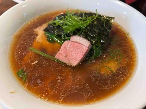 2022年オープンの人気店。メインは醤油、しお、煮干し、つけ麺、担々麺、まぜそばとあるが、「鶏醤油ラーメン」を注文。