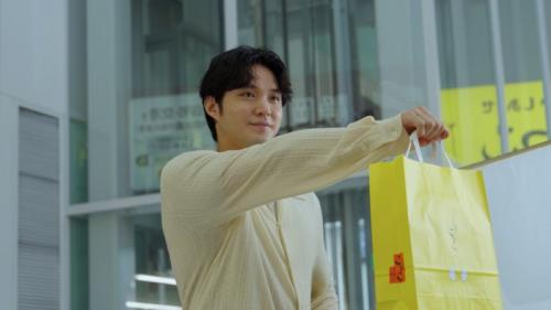 撮影では、磯村さんが監督やスタッフとモニターを囲み、真剣な表情で映像をチェック。身振り手振りを交えながら、次のシーンの動きや表情について熱心に意見交換する姿が見られました。その一方、空港のお土産店を再現したセットで、キャッチーなCM音楽「こっこもってこ♪」が流れると、音楽に合わせて磯村さんがリズミカルに体を揺らし、シュールな動きを披露。カットがかかった後も、チャーミングなステップを続けるお茶目な一面に、現場は笑いに包まれ、終始和やかな雰囲気で撮影が進みました。