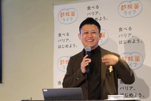 セミナー前半では、感染症が増える季節を前に、日常生活の中で実践できるセルフケアとしての発酵食品の位置づけが語られた。酢酸菌をはじめとする発酵由来の“菌”をどう生活に取り入れるかが、医療と研究、そして食卓の視点から共有された。