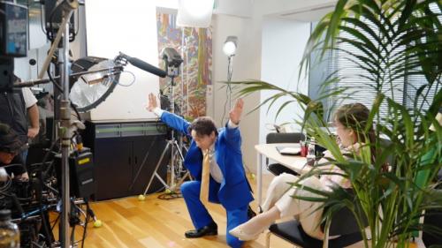 「ガスター10!」の発声練習も繰り返され、力強い「ガスター10!」のフレーズが現場に響き渡ると、山本さんの演技にスタッフ一同、圧倒されていました。過去のCMを懐かしく感じる場面もあり、笑顔がこぼれるシーンも。山本さんが急な胃痛に悩む人をレスキューする、テンポ感のあるCMに仕上がっています。