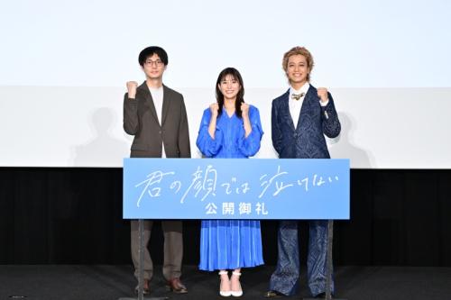 ある日突然、誰かの体と入れ替わってしまう──。作家・君嶋彼方による小説を実写映画化した『君の顔では泣けない』が大ヒット公開中。11月26日にはTOHOシネマズ新宿にて公開後御礼舞台挨拶が実施され、主演の芳根京子と共演の髙橋海人、そして坂下雄一郎監督が登壇した。