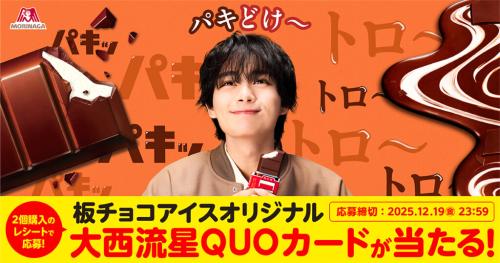 森永製菓は、「板チョコアイス」のCMキャラクターを務める大西流星(なにわ男子)を起用した、新TVCM「パキどけ」篇を制作。