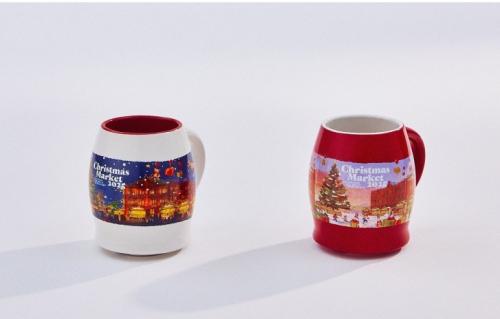 毎年デザインが変わる会場限定マグカップはファンも多いクリスマスマーケットの人気アイテム。今年のデザインは、“みなとみらいの夜景を背にした横浜赤レンガ倉庫に雪とプレゼントが降りしきる12月24日の夜”を描いた白、“みなとみらいの港を背にした朝焼けの横浜赤レンガ倉庫に雪とプレゼントが降り積もる12月25日の朝”を描いた赤、の2色展開。
