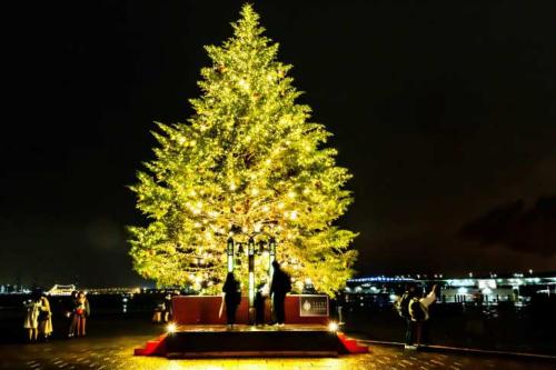 今年は本イベントを象徴する本物のモミの木を使用した巨大ツリーが過去最大約12mにアップデート。色が変わる約22,000球超ものLEDで多様な光の演出を施す。