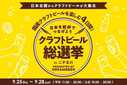 9月25日(木)~28日(日)の4日間、二子玉川ライズ中央広場スタジオ&ホールにて、ビールイベント「クラフトビール総選挙2025 in二子玉川」が、株式会社DREAMBEER主催で開催されます。