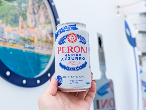 缶のラベルデザインにも注目を。ブランドカラーである青と白を基調に、中央には力強く「PERONI」のロゴが配置され、どこか誇り高くスタイリッシュな雰囲気。写真映えするデザインで、飲む前から気分を盛り上げてくれます。