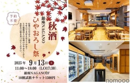 長野県は、同県の魅力を発信し、首都圏とつなぐ情報発信拠点「銀座NAGANO」が、2025年9月13日(土)に信州の酒蔵から50種類以上の秋酒「ひやおろし」が揃う試飲イベント「ひやおろし祭」を開催すると発表しました。