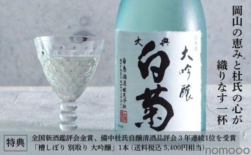今回のファンドでは特典として1口につき、全国新酒鑑評会金賞、備中杜氏組合3年連続1位を受賞した大吟醸の「槽しぼり別取り大吟醸 金賞受賞記念酒」720ml(送料税込5,400円相当)1本が、ファンド募集終了後会計期間中にお届けとなります。